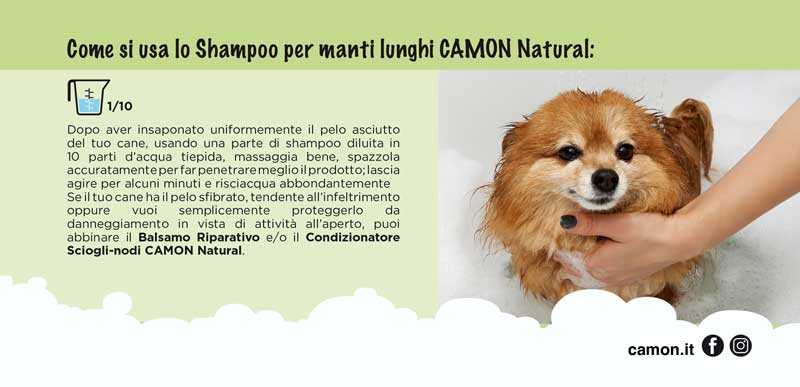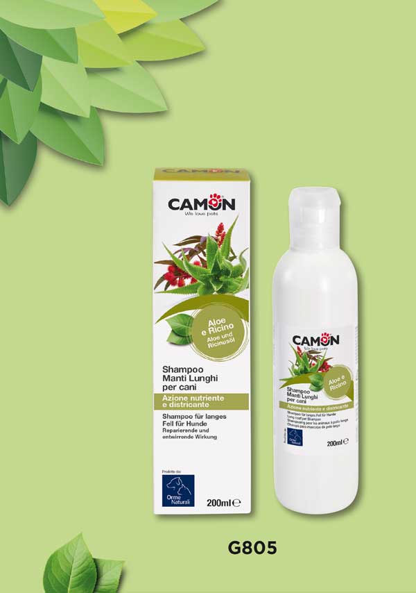 Lo shampoo per manti lunghi CAMON Natural, esplica un’azione nutriente, rinforzante e lucidante. Dona elasticità e tonicità alla cute, condiziona a previene la formazione di nodi, donando un’elevata pettinabilità. Riduce l’elettricità statica e lascia il manto liscio e setoso, svolgendo una funzione lenitiva e rinfrescante. I manti lunghi sono quelli che necessitano di più trattamenti cosmetici. Il pelo lungo deve sempre ricevere condizionamento e nutrimento per risultare forte e vitale. I lavaggi regolari, oltre a rinforzare il mantello, evitano la formazione dei nodi e di conseguenza, to¬elettature drastiche.